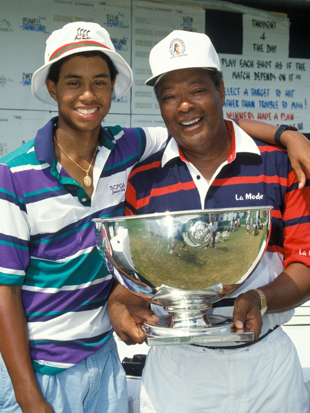 The final round was tense. While once again Sergio Garcia faded while playing alongside Woods in the final pairing, Chris DiMarco made a charge and cut Woods’s lead to one shot on the back nine. But Woods birdied 14, 15, and 16 to win his first major since his father, Earl, passed away earlier in the year. Upon tapping in the final putt for victory, he collapsed into the arms of his caddie, Steve Williams, and cried for longer than perhaps all of his previous majors combined. But the victory will always be remembered for one more reason.