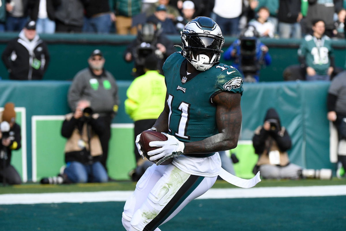 NFL, American Football Herren, USA 2022: Titans vs Eagles DEC 04 Dec 4, 2022 Philadelphia, Pennsylvania, USA Philadelphia Eagles wide receiver A.J. Brown 11 scores a touchdown during the first half against the Tennessee Titans in Philadelphia, Pennsylvania. Mandatory Credit Eric Canha/CSM Philadelphia PA USA EDITORIAL USE ONLY Copyright: xx ZUMA-20221204_zaf_c04_210.jpg EricxCanhax csmphotothree014583