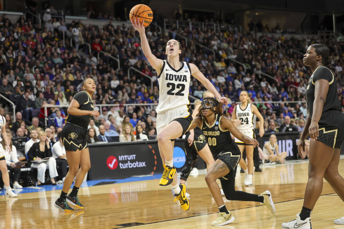 March 30, 2024, Albany, New York, USA: Iowa guard CAITLIN CLARK 22 puts up an easy lay-up during the 2024 NCAA, College League, USA WomenÃââ s Basketball Tournament Albany 2 Regional semifinal at MVP Arena in Albany, N.Y. Albany USA – ZUMAr225 20240330_zsp_r225_011 Copyright: xScottxRausenbergerx