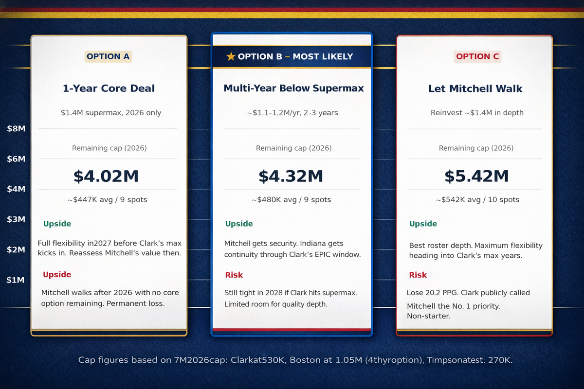 The most likely option is the two sides agree to a multiyear deal worth below the supermax. Mitchell receives security at the cost of some peak earning potential. Indiana gets continuity in place of some financial flexibility.