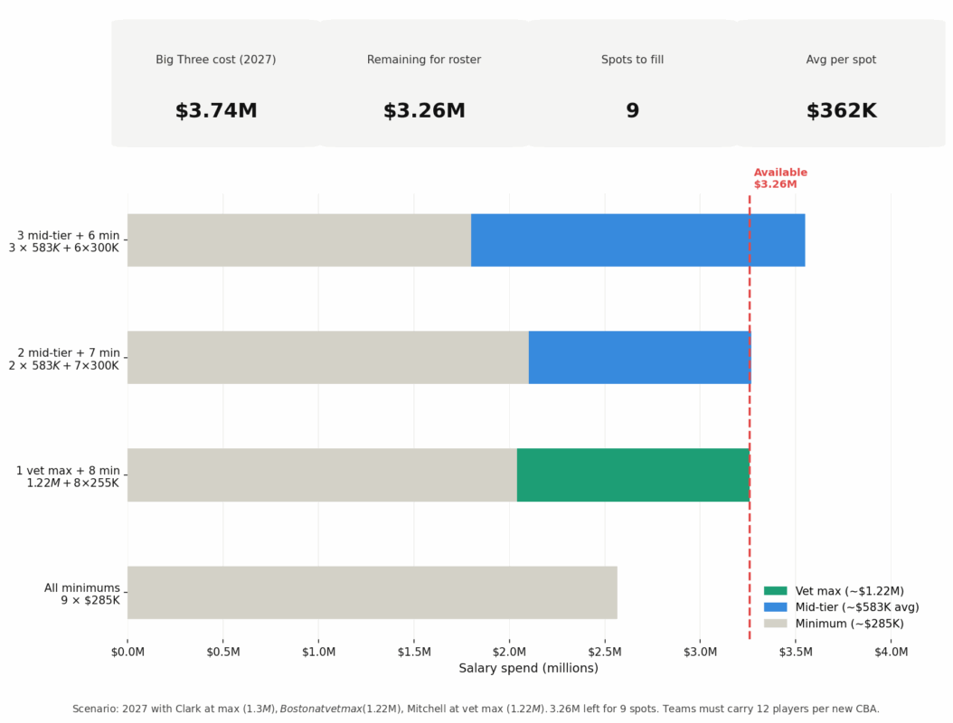 By signing Mitchell to the supermax now, Indiana gives itself cap flexibility before Clark becomes max and supermax eligible. This almost assures that eight-year veteran will walk as a free agent in 2027 with no core options remaining. Under the new CBA ruling, players with seven-plus years in the league cannot be cored.