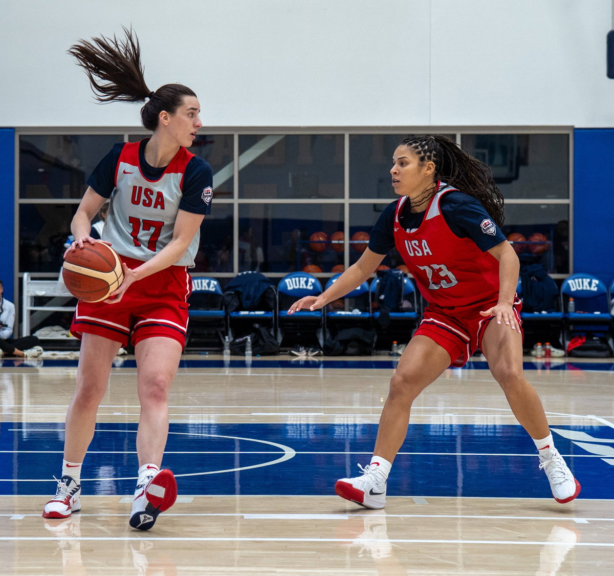 December 13, 2025, Durham, North Carolina, USA: Caitlin Clark 17 is guarded by Veronica Burton 23 during a scrimmage at the USA Basketball Women s national team, Nationalteam December Training Camp. Durham USA – ZUMAh304 20251213_zsp_h304_004 Copyright: xAlexxHallowayx