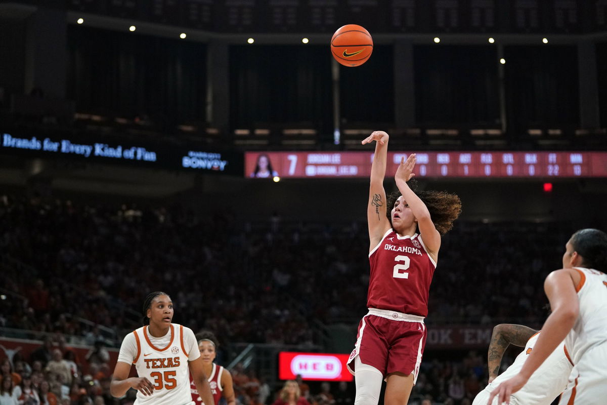 NCAA, College League, USA Womens Basketball: Oklahoma at Texas Feb 1, 2026 Austin, Texas, USA Oklahoma Sooners guard Aaliyah Chavez 2 takes a jump shot during the first half against the Texas Longhorns at Moody Center. Austin Moody Center Texas USA, EDITORIAL USE ONLY PUBLICATIONxINxGERxSUIxAUTxONLY Copyright: xDustinxSafranekx 20260201_sns_sj5_00508