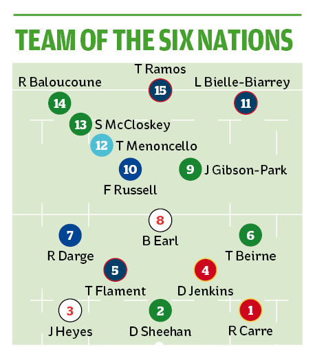 Two Englishmen in the team of the tournament, after finishing fifth? Unconscious bias? No, a conscious nod to Heyes as a front-row rock amid much uncertainty around him, as he also covered well for the injuries to fellow tightheads Will Stuart and Asher Opoku-Fordjour.