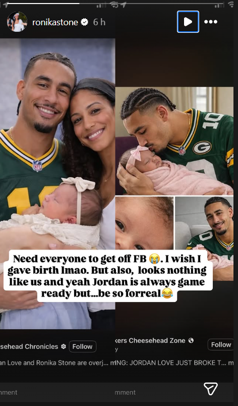 “Need everyone to get off FB (crying emoji). I wish I gave birth lmao. But also, looks nothing like us and yeah Jordan is always game ready but…be so forreal,” Ronika Stone posted on her Instagram story.