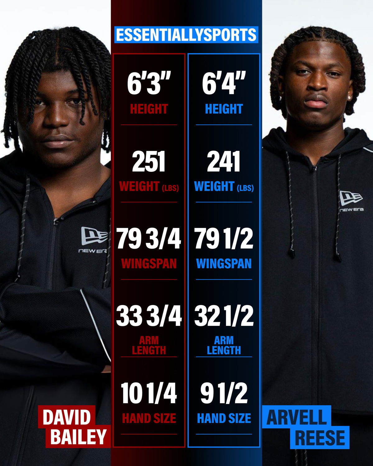 Bailey came in at 6-foot-4, 251 pounds and measured 33 ¾ arm length with 10 ¼ hands at the combine. He ran a 4.5 40 with a 1.62 10-yard split and showcased the elite athlete he is on the field.