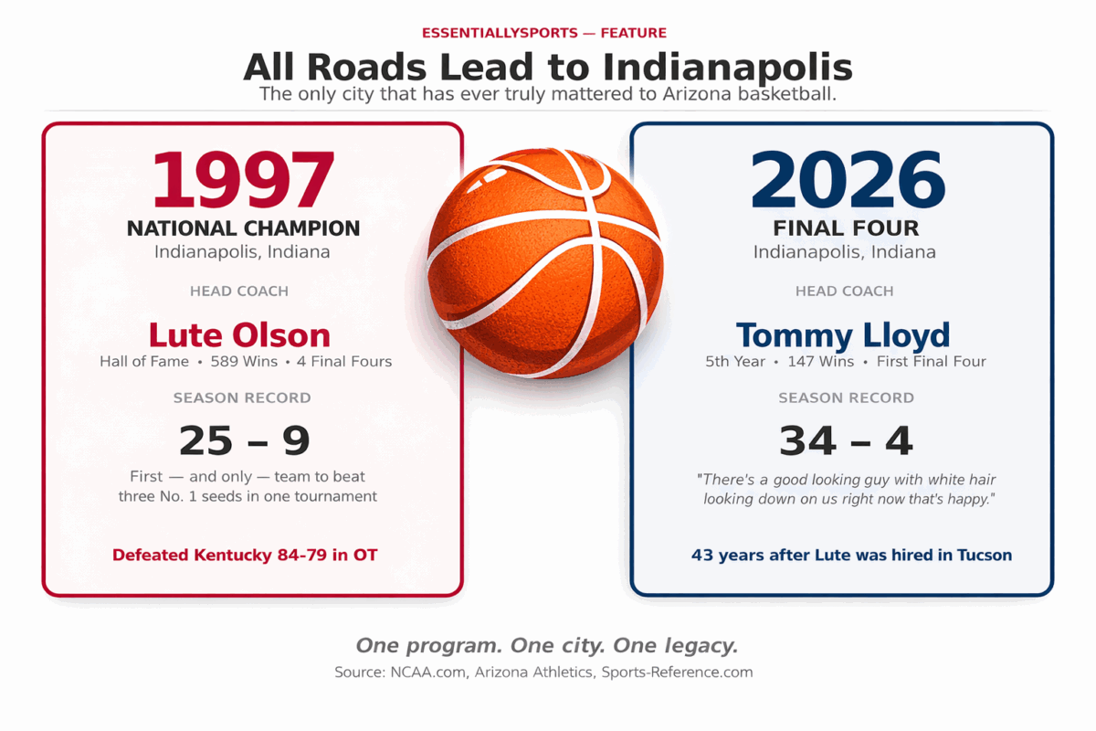 Translation? Olson was the last coach to lead both Iowa and Arizona to the Final Four. Until 2026, when Tommy Lloyd stepped up to the crowd at the Elite Eight and said the words that Arizona fans have been waiting to hear for 25 years.