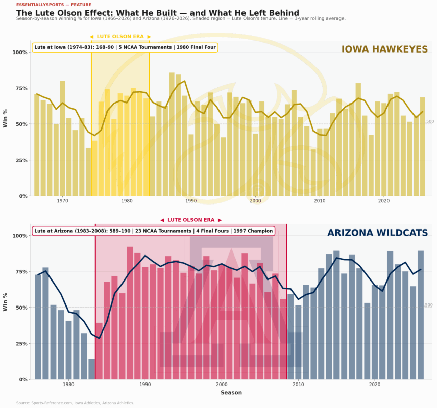 Despite being separated by a decade, both Arizona and Iowa experienced historical arcs that are eerily similar during the pre-, active- and post-Olson eras at each school.