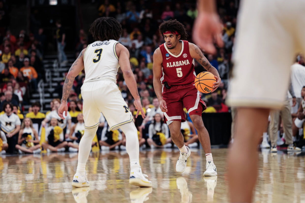 NCAA, College League, USA Men s Basketball Championship Midwest Regional Sweet 16: Michigan Wolverines vs. Alabama Crimson Tide in Chicago, USA – 27 Mar 2026 Amari Allen R of the Alabama Crimson Tide in action against Elliot Cadeau L of the Michigan Wolverines in the Sweet 16 round of the NCAA Men s Basketball Tournament at the United Center in Chicago, Illinois. Final score Michigan 90-77 Alabama. Chicago United States Copyright: xNicholasxMullerx/xSOPAxImagesx NMULLER_MICH_ALA_NCAASWEET1629